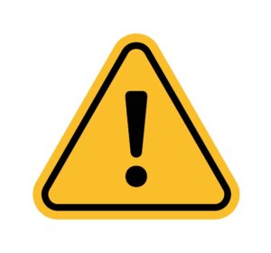 - Description: An exclamation mark inside a triangle, usually in yellow.