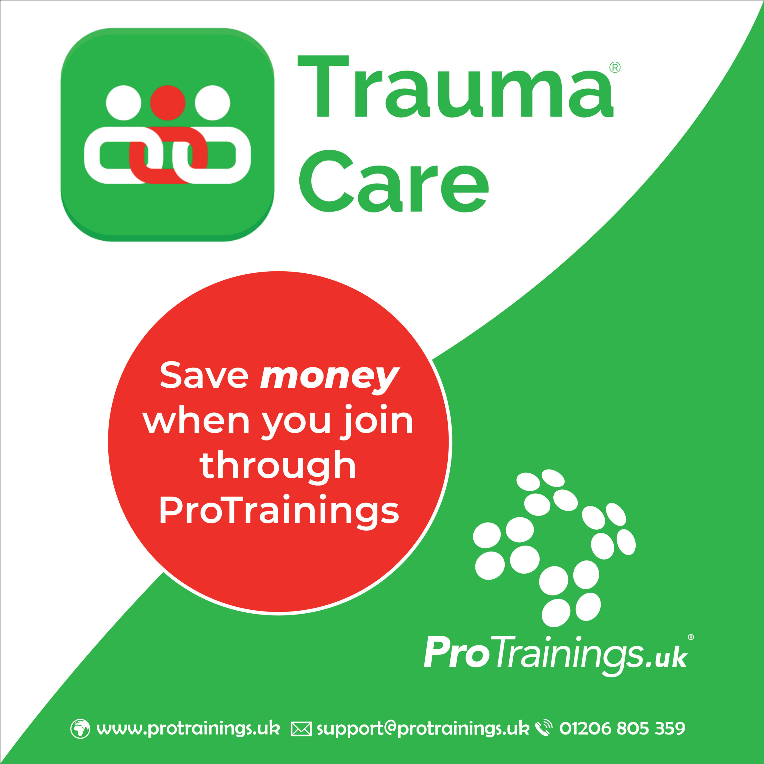 To take advantage of this offer, simply follow this link www.protrainings.uk/blog/traumacare and sign up for Trauma Care Membership. Once you have signed up, your discounted rate of £2.50 a month will be automatically applied. This price is paid annually and you will be buying directly from Trauma Care.