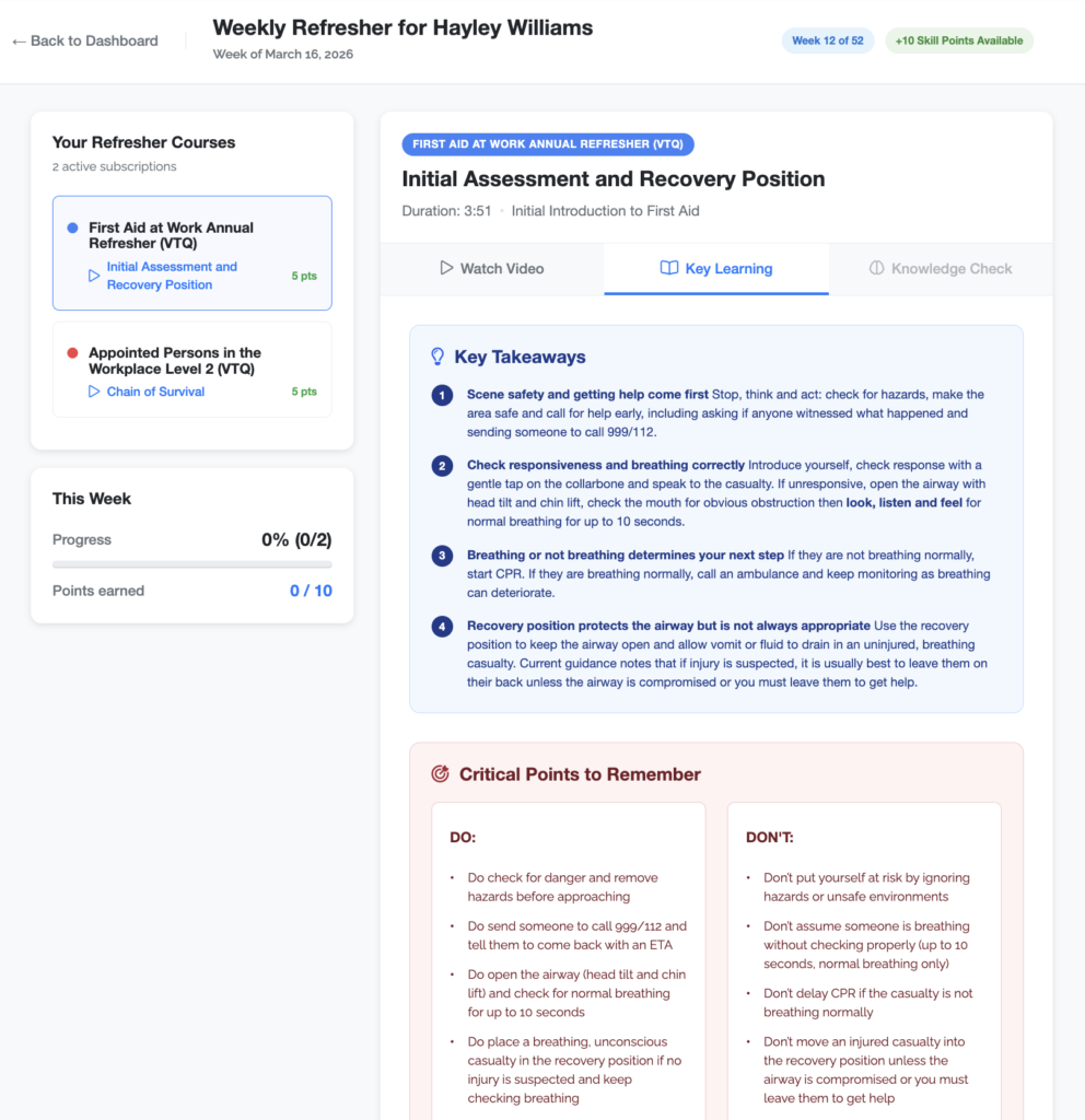 Keeping important skills fresh doesn’t need to take a lot of time. That’s the idea behind our weekly refresher emails – short, focused video reminders designed to help you stay confident in your knowledge.