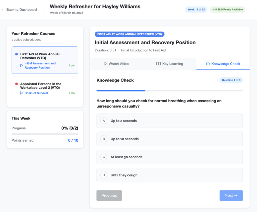 While the life-saving video content you trust remains exactly the same, we’ve introduced a few new features designed to help you stay engaged and retain more of what you learn.