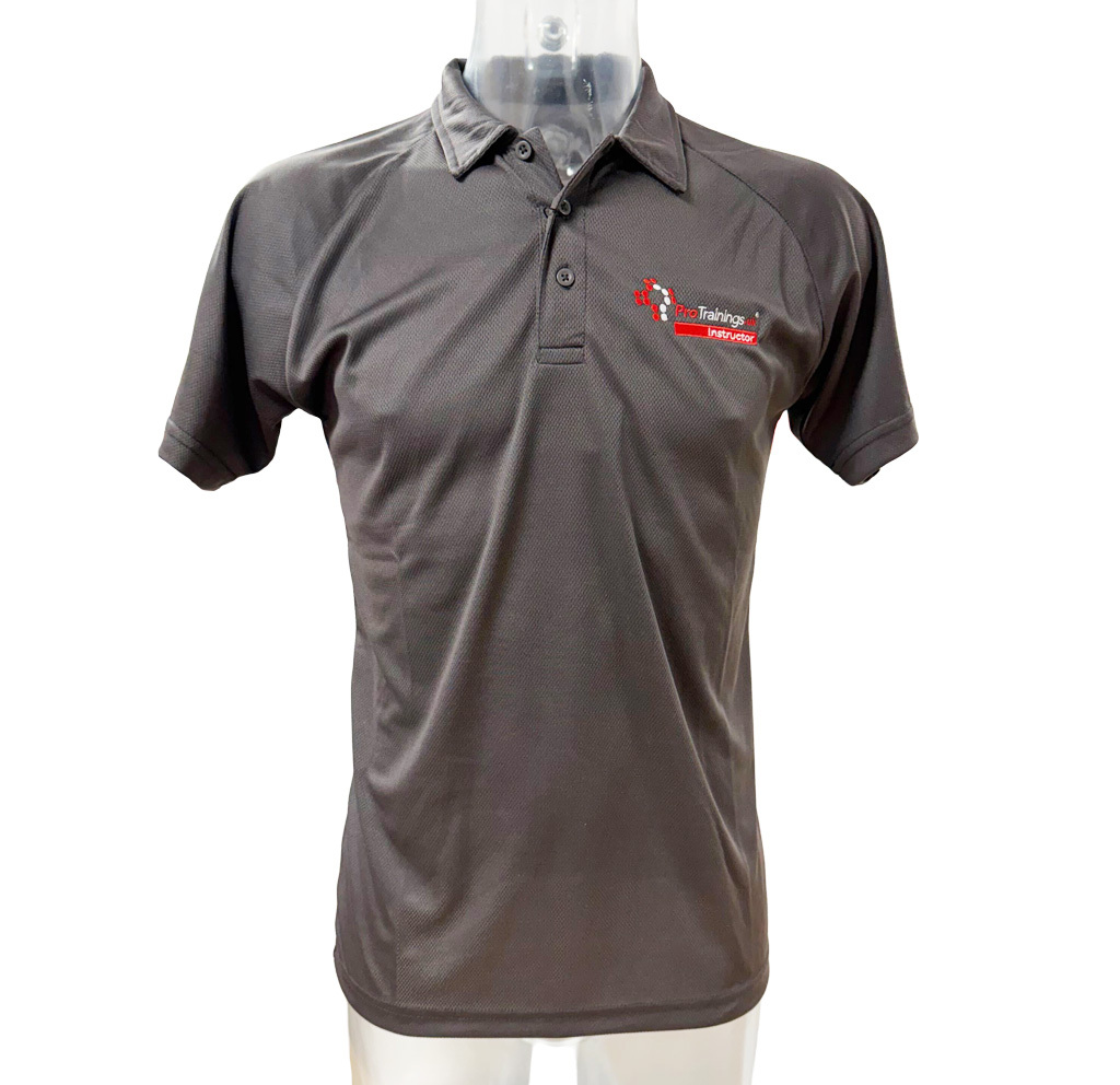 Available in a classic charcoal grey with a modern fit and three-button collar, this polo combines comfort, professionalism, and practicality—perfect for instructors who need reliable workwear.